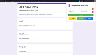 นอกจากนี้ ส่วนขยายยังมีความสามารถในการจับคู่แบบ fuzzy ซึ่งช่วยให้แน่ใจว่าความแตกต่างในชื่อฟิลด์ เช่น 'E-mail' และ 'email' จะถูกจับคู่และเติมอย่างถูกต้อง ฟังก์ชันนี้ทำให้มันเป็นทรัพย์สินที่มีค่า สำหรับผู้ใช้ที่มีปฏิสัมพันธ์กับ Google Forms บ่อยครั้ง ไม่ว่าจะเป็นสำหรับการสำรวจ การสมัคร หรือวัตถุประสงค์ในการเก็บข้อมูลอื่น ๆ